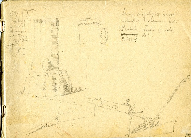 Estudi del pilar de l'altar major i arada. Hi ha una inscripció en llatí