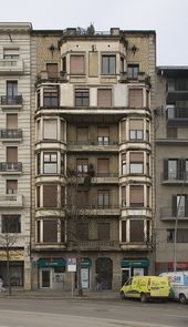 Bloc de vivendes projectat amb un aire racionalista amb tocs encara noucentistes. La façana té una lectura compositiva horitzontal per plantes, compaginada amb la verticalitat del conjunt de les tribunes, que en arribar a dalt formen un arc en ordre gegant. utilització de forats circulars i baranes amb barrots horitzontals.
