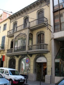 Edifici de planta rectangular amb planta planta baixa i dos pisos i teulada a dues aigües. La façana de composició simètrica respecte al cos central, a la planta pis presenta galeria d'esgrafiat i vidrieres flanquejada per balcons, i al segon pis un únic balcó corregut. Totes les obertures són d'arc peraltat. La part baixa de la façana ha estat revestida amb pedra de girona, i a la part de dalt es clou amb ràfec força volat de mènsules allargades decorat amb esgrafiat de garlandes.
