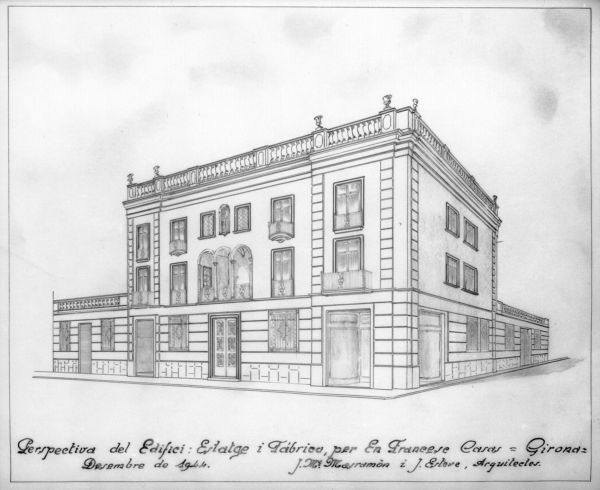 Entre els anys 1944 i 1945 Josep Esteve i Joaquim Maria Masramon projecten per a Francesc Casas Vila (industrial xocolater de Sant Feliu de Guíxols) un edifici destinat a "Estatge i fàbrica" a la cantonada entre ctra. Sta. Eugènia i c. Canonge Dorca, un magatzem a la ctra. Sta Eugènia i un edifici destinat a indústria i vivendes al c. Canonge Dorca. L'any 1948 modificant el projecte de 1944, redacten un nou projecte per a l'edifici principal (situat a la ctra. Sta. Eugènia - c. Canonge Dorca), que es construirà al llarg de 1950.