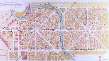 Tal com s'exposa a la Guia d'Arquitectura d'Olot, "A partir del Passeig de Barcelona (límit Nord-Oest) i del riu Fluvià, dibuixa una disposició radiocèntrica de carrers amb dos focus (plaça d'Espanya i plaça d'Amèrica) units pel pont de Colom. El simbolisme d'aquesta ordenació és portat a l'extrem. Així, cada plaça constitueix el pol d'un hemisferi del globus desenrotllat en planta, on els meridians i paral.lels es denominen amb topònims americans i espanyols." (pàg. 58)