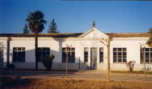 Edifici de planta baixa amb grans finestrals oberts al carrer. L'entrada es destaca en façana pel frontó que la corona.