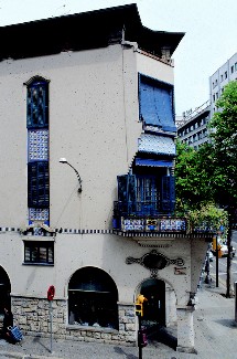 Casa unifamiliar construïda en el nou eixample sorgit de l'enderroc del baluard de Santa Clara. L'edifici, de planta baixa destinada a magatzem i dos pisos per habitatge, se situa en xamfrà. Aquesta circumstància es converteix en l'element més definidor de la façana, si bé al llarg de les obres es va suprimir la torre que havia de coronar la cantonada. El parament exterior destaca per un tractament de superficies planes i obertures verticals decorades amb ceràmica vidriada.