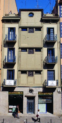 Reforma integral i ampliació d'un edifici existent per a l'industrial de la construcció Joaquim Colomer. La planta baixa està destinada a botiga i els tres pisos a habitatges. En la composició de la façana predomina la verticalitat, marcada per les obertures, les franges verticals que recorren tota la llargària i el cos central que s'eleva sobre el fris. Cal destacar els tres plafons de terracuita amb relleus de Jaume Busquets, la ceràmica de la Gabarra dels rètols de la botiga (amb el nom del propietari), els treballs en forja de la porta d'entrada (amb les inicials JC) i l'òval que la corona, on apareix un colom en referència al nom del propietari.