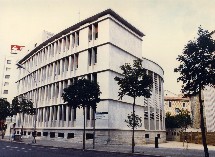 Edifici construït seguint els models proposats per l'arquitectura oficial del Règim d'acord amb el monumentalisme que li era propi, donant-li però formes més modernes, i en cert punt racionalistes.