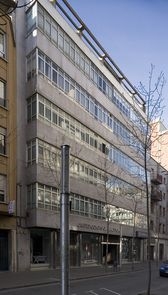Edifici de PB + 5 amb una interessant façana composada a partir de línies horitzontals formades per les finestres corregudes de banda a banda de la façana en cada planta, seguint els postulats de Le Corbusier en aquest tema. La coberta plana i la façana en tribuna acaben de concretar aquesta horitzontalitat.