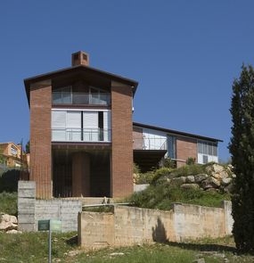 Casa construïda seguint l'orografia de la muntanya. El programa s'esglaona en tres nivells que acaben en una coberta regular comuna a una mateixa alçada.