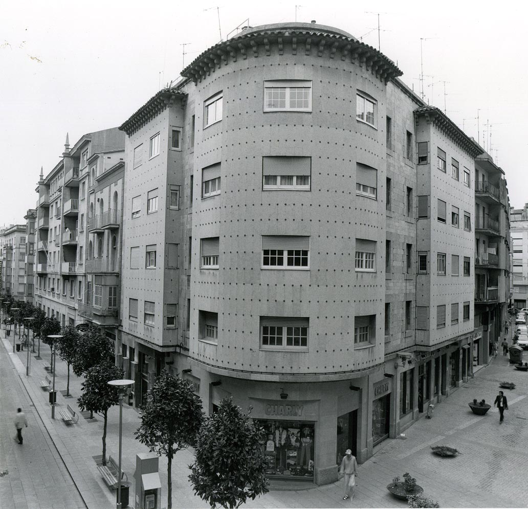 Perspectiva de la Casa des del xamfrà contrari. Es veu al fons part del carrer Santa Clara i del Carrer Hortes