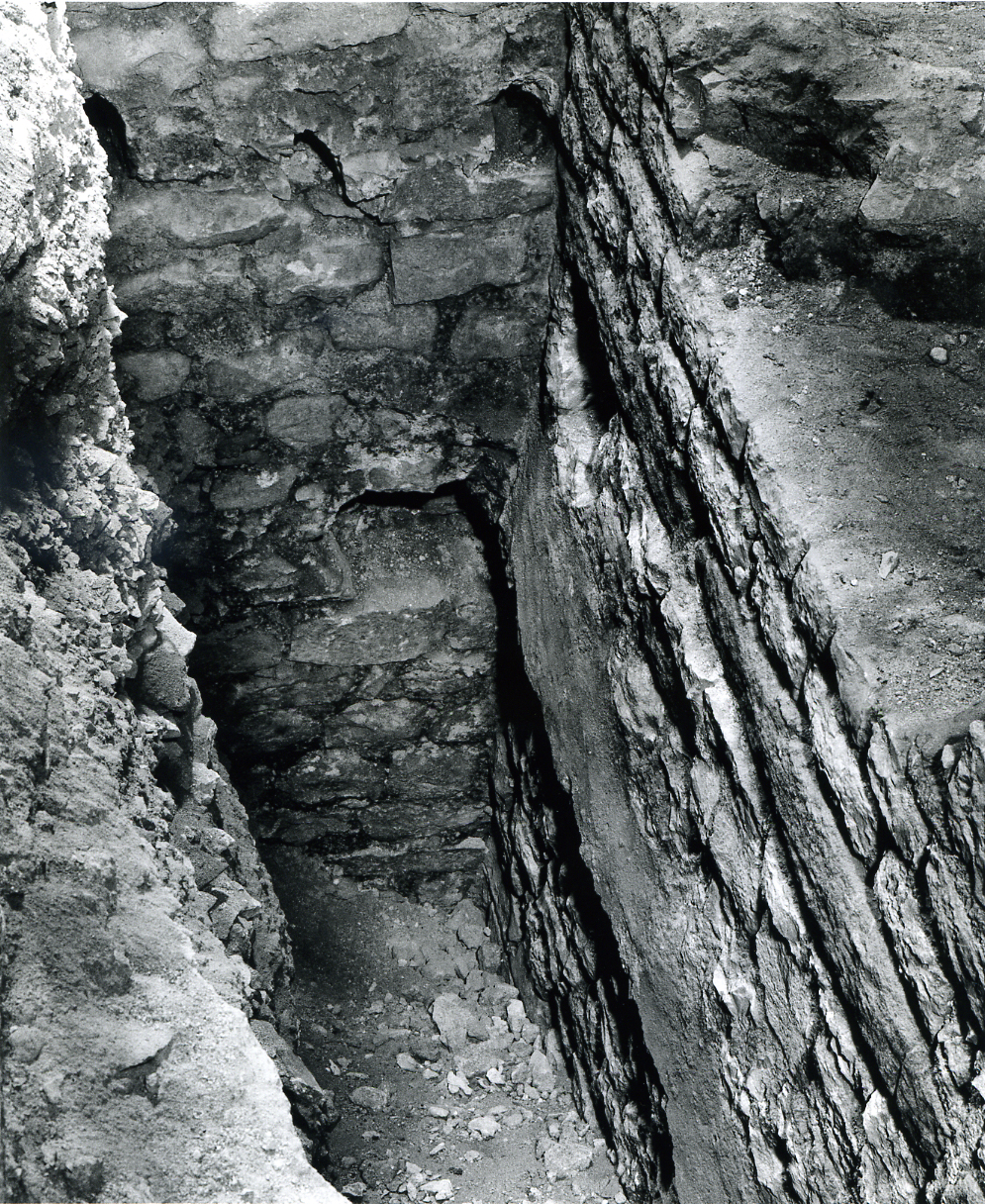 Imatges del basament , les escales i la base de les columnes de la portalada principal de la Catedral romànica, que es va enderrocar per a edificar la nau gòtica. Aquestes restes es van excavar el mes de febrer de 98 i van aparéixer immediatament a sota del paviment enllosat de la nau gòtica. Desprès es van tornar a cobrir.