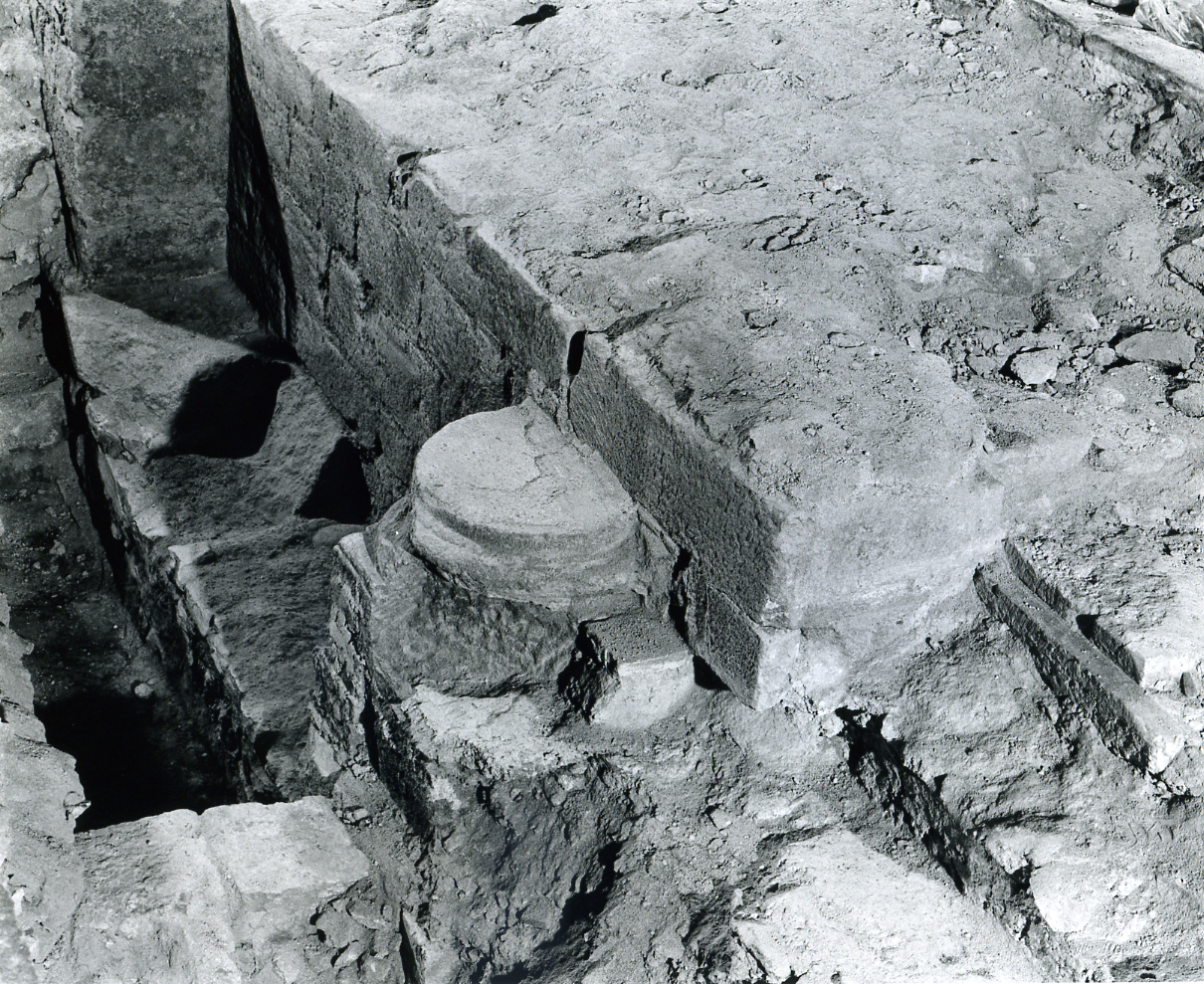 Imatges del basament , les escales i la base de les columnes de la portalada principal de la Catedral romànica, que es va enderrocar per a edificar la nau gòtica. Aquestes restes es van excavar el mes de febrer de 98 i van aparéixer immediatament a sota del paviment enllosat de la nau gòtica. Desprès es van tornar a cobrir.