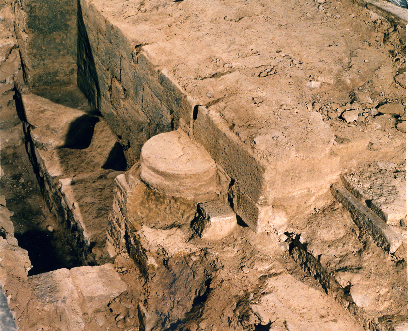 Imatges del basament , les escales i la base de les columnes de la portalada principal de la Catedral romànica, que es va enderrocar per a edificar la nau gòtica. Aquestes restes es van excavar el mes de febrer de 98 i van aparéixer immediatament a sota del paviment enllosat de la nau gòtica. Desprès es van tornar a cobrir.