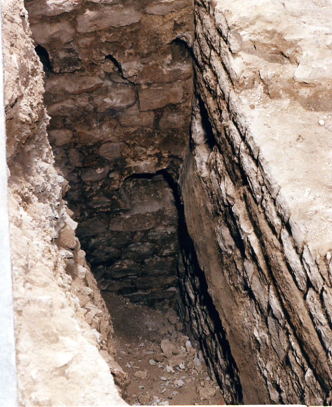 Imatges del basament , les escales i la base de les columnes de la portalada principal de la Catedral romànica, que es va enderrocar per a edificar la nau gòtica. Aquestes restes es van excavar el mes de febrer de 98 i van aparéixer immediatament a sota del paviment enllosat de la nau gòtica. Desprès es van tornar a cobrir.