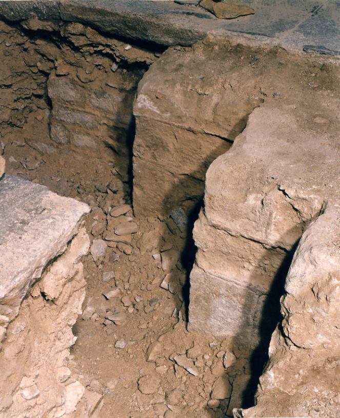 Imatges del basament , les escales i la base de les columnes de la portalada principal de la Catedral romànica, que es va enderrocar per a edificar la nau gòtica. Aquestes restes es van excavar el mes de febrer de 98 i van aparéixer immediatament a sota del paviment enllosat de la nau gòtica. Desprès es van tornar a cobrir.
