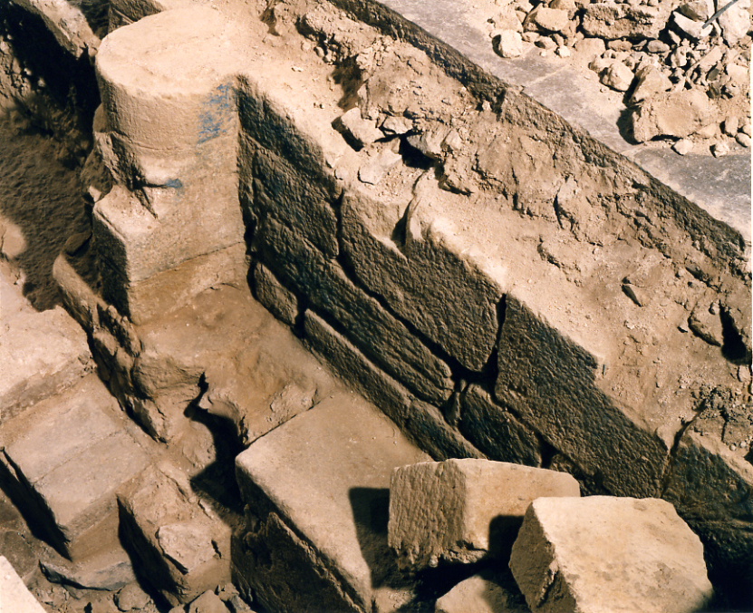 Imatges del basament , les escales i la base de les columnes de la portalada principal de la Catedral romànica, que es va enderrocar per a edificar la nau gòtica. Aquestes restes es van excavar el mes de febrer de 98 i van aparéixer immediatament a sota del paviment enllosat de la nau gòtica. Desprès es van tornar a cobrir.