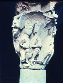 Vista del Claustre . Adoració dels Reis Mags. Capitell de l' ala Sur