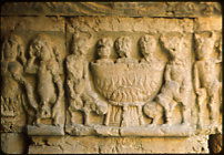 Detall fris pilar mitjaner ,galeria est , del claustre de la catedral de Girona , segle XII.