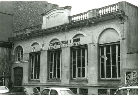 Vista de l'edifici .En el moment de la imatge, seu del local electoral de Convergència i Unió.