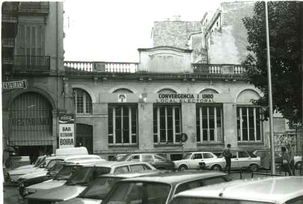 Vista de l'edifici .En el moment de la imatge, seu del local electoral de Convergència i Unió.