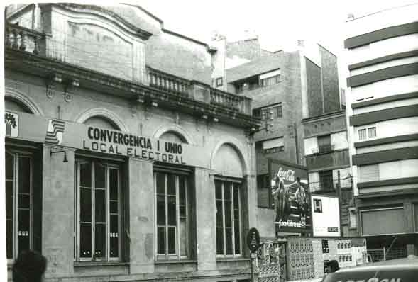 Vista de l'edifici .En el moment de la imatge, seu del local electoral de Convergència i Unió.