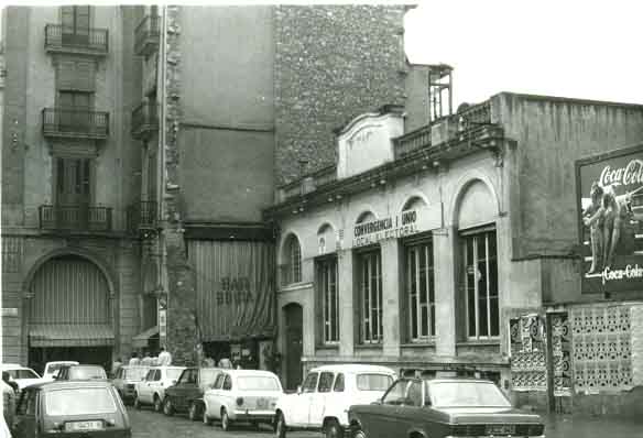 Vista de l'edifici .En el moment de la imatge, seu del local electoral de Convergència i Unió.