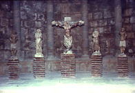 Vista del grup escultòric del Calvari , atribuït al Mestre Bartomeu de Girona.
