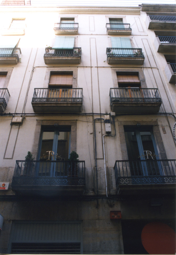 Vista de l'edifici de planta baixa i quatre pisos rematats per una cornisa motllurada. Façana estucada excepció dels brancals i llindes de les obertures quen són de pedra ,aixi com la planta baixa i les llosanes dels balcons.Barana de forja.