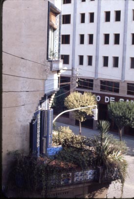 Detall del xamfrà amb el balcó del primer pis.
