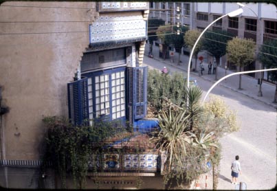 Detall del xamfrà amb el balcó del primer pis.