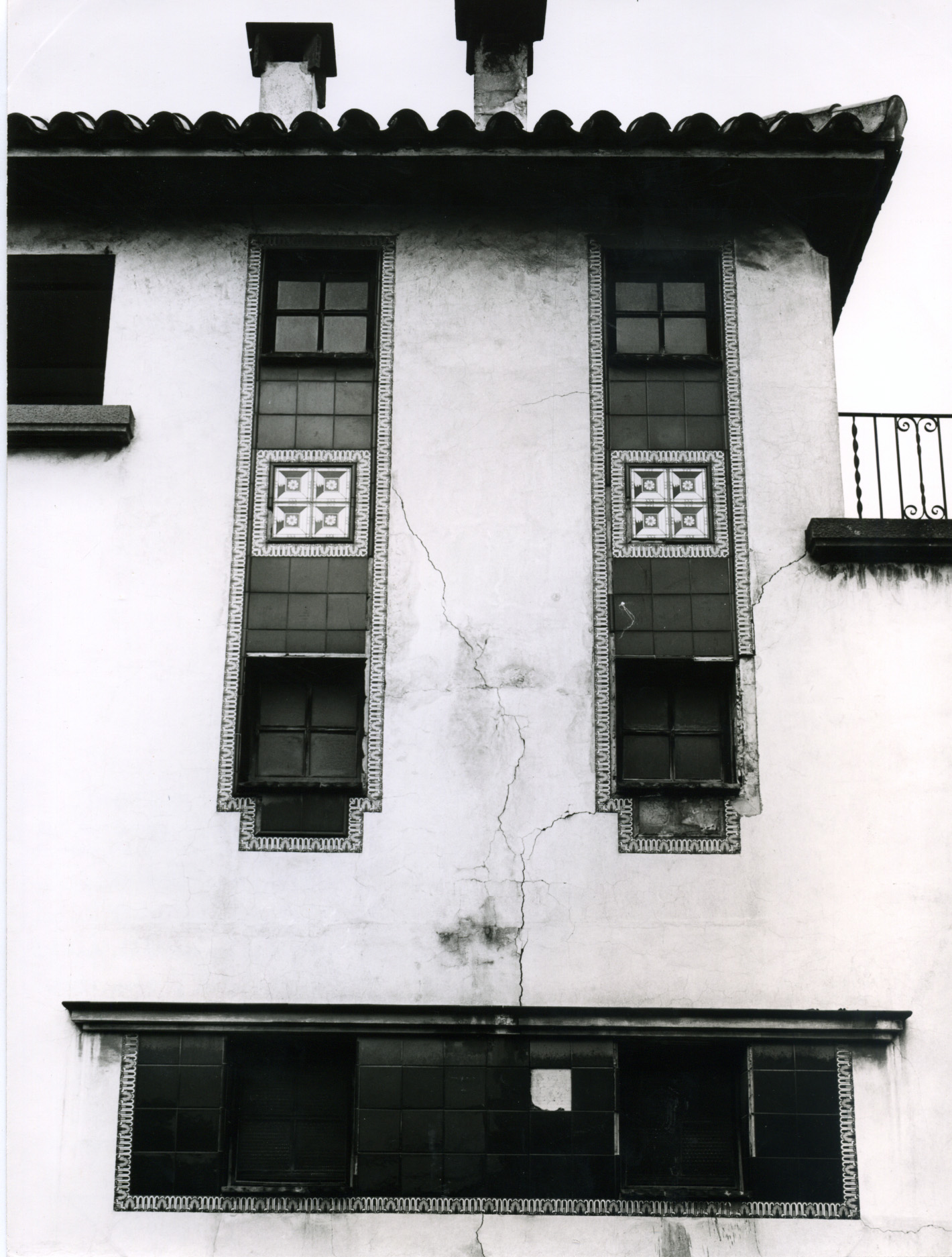 Detall de la façana lateral del xalet on s'aprecia el treball en ceràmica. Aquest xalet o casa núm. 5 va ser projectat per Rafael Masó i ampliat per Josep Esteve.