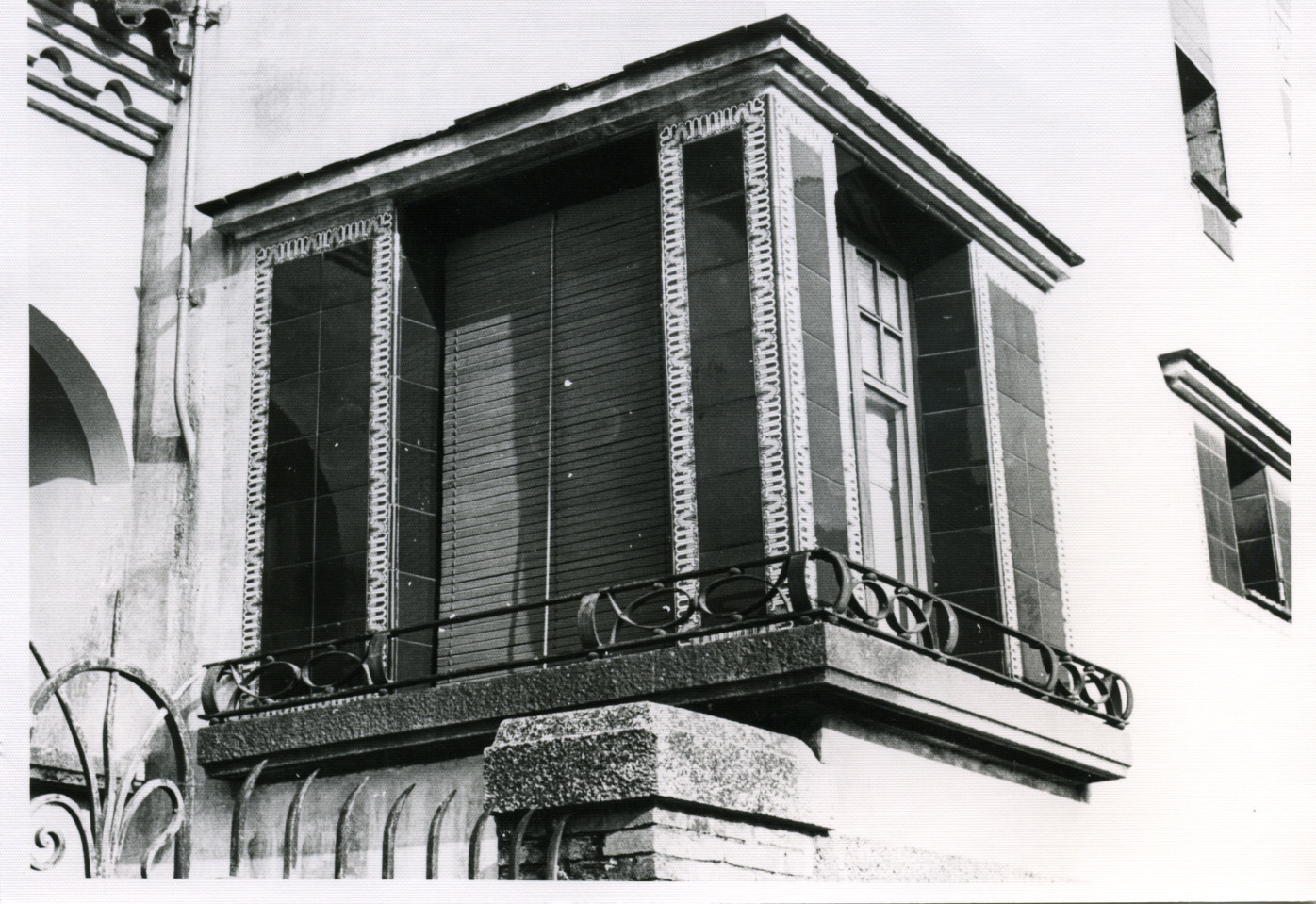 Detall d'una finestra en cantonada del xalet o casa núm. 5 de la urbanització. Aquest xalet va ser projectat per Rafael Masó i ampliat per Josep Esteve.