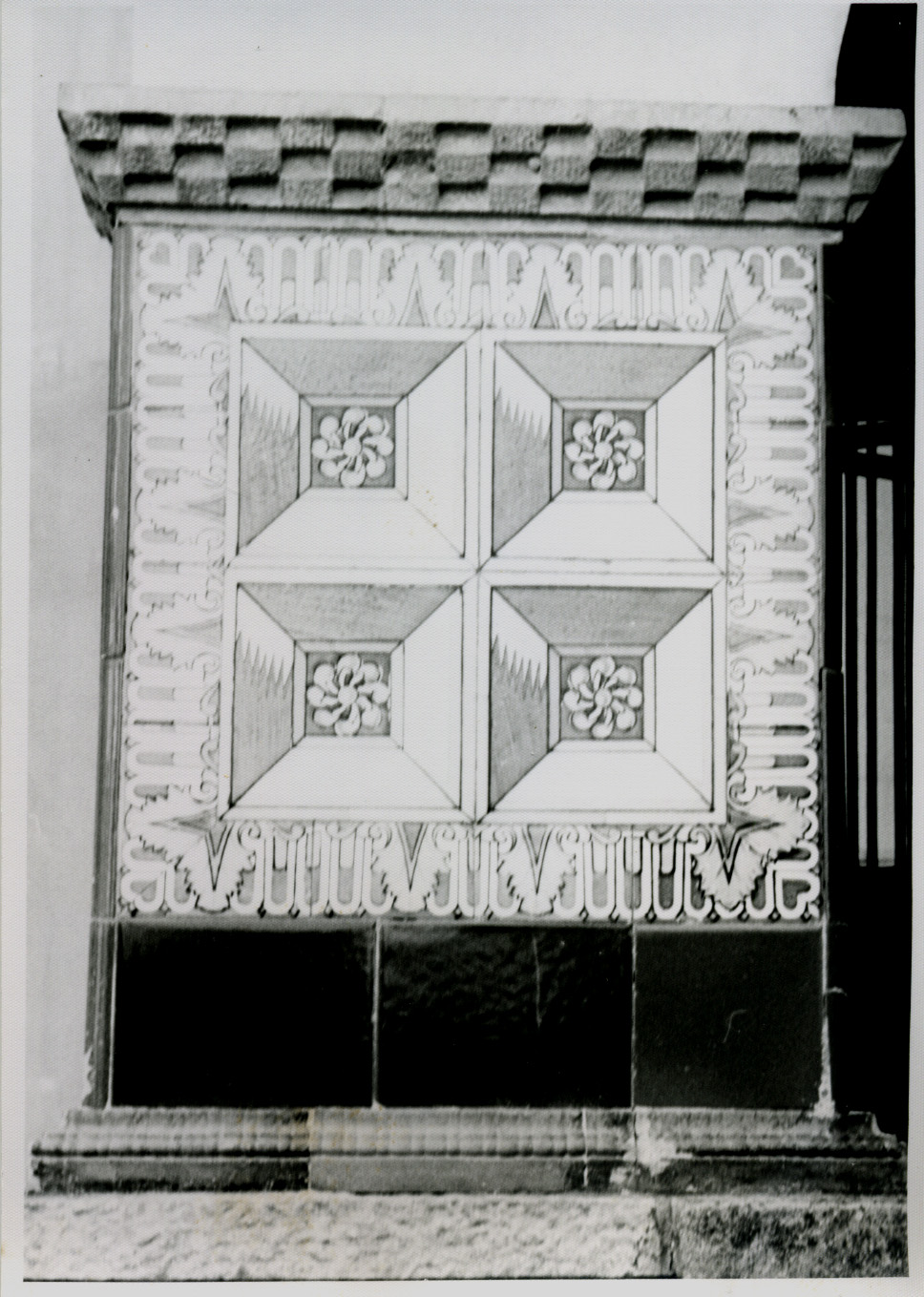Detall d'un dels plafons ceràmics de la façana del xalet o casa núm. 5.
