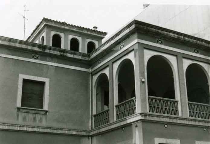 Detall de la galeria i la torre. Instàntania presa durant les obres d'enderroc de la casa.