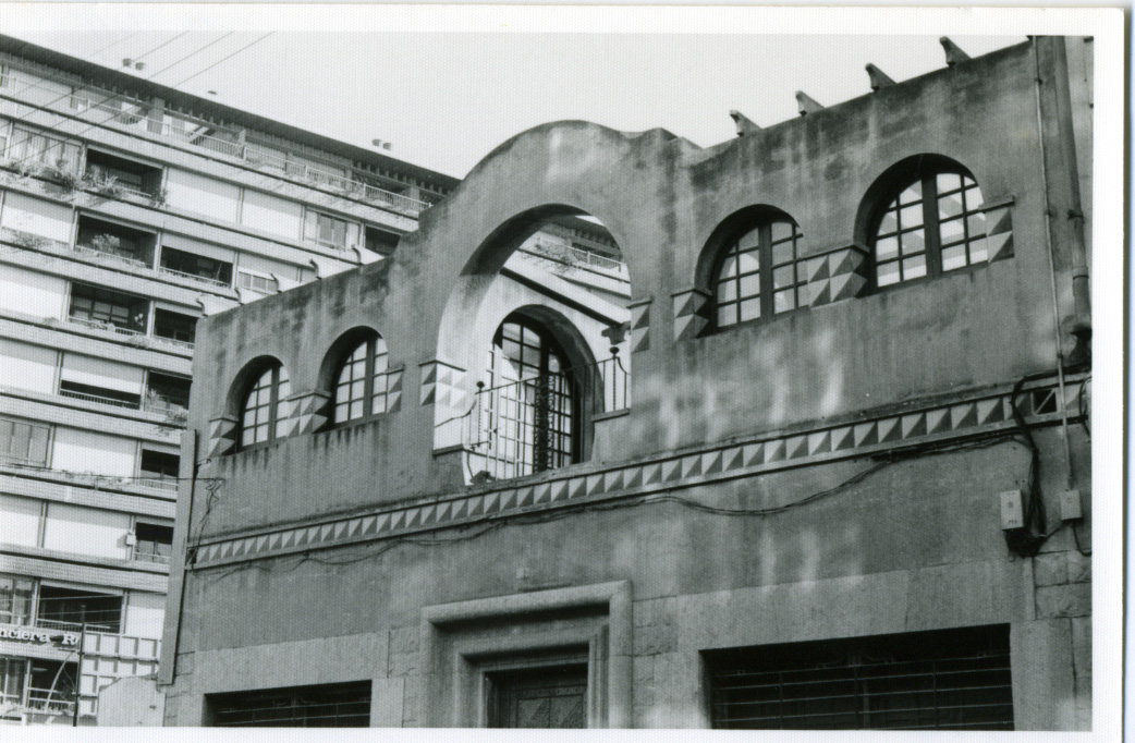Detall del coronament de la façana del carrer Sèquia.