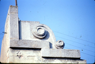 Detall del coronament de la façana.