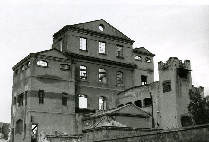 Vista de l'edifici de la fàbrica durant el seu enderroc.