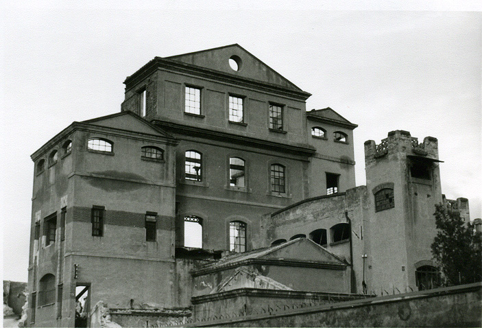 Vista de l'edifici de la fàbrica durant el seu enderroc.