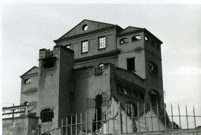 Vista de l'edifici de la fàbrica durant el seu enderroc.