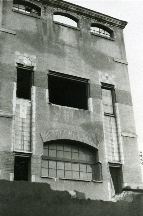 Detall de l'edifici de la fàbrica durant el seu enderroc.