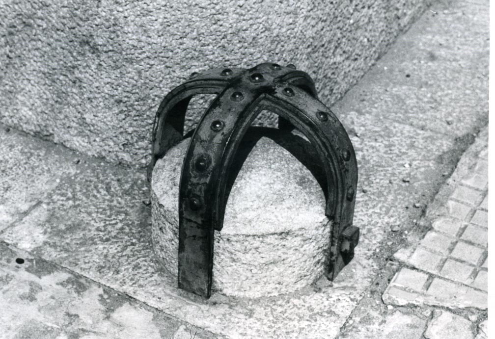 Detall de la pilona que flanqueja l'entrada projectada l'any 1932 per l'arquitecte Rafael Masó.