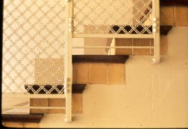 Detall de la barana de l'escala i dels escalons (en ceràmica).