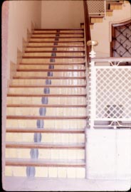 Detall dels escalons, en ceràmica, de l'escala de l'entrada.