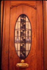Detall del vitrall de la porta d'entrada a l'habitatge.