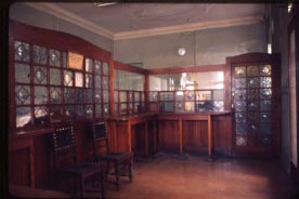 Perspectiva general de les oficines de la farinera. A la imatge s'aprecia el treball en ebanisteria i vitrall.