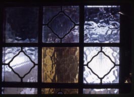 Detall d'un dels vidres dels plafons interiors de les oficines.