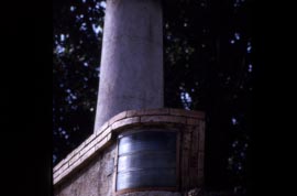 Detall del fanal situat a l'angle de la paret de tanca projectada per Masó l'any 1932.