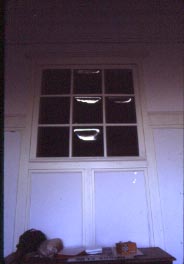 Detall de la finestra interior que dóna a la font del hall.