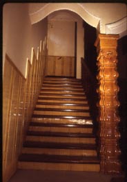 Perspectiva del primer tram d'escala. A la imatge és ben visible la columna i l'arramblador ceràmics.