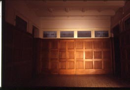 Vista del distribuidor on destaca el recobriment en fusta dels murs.