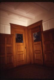 Vista del distribuidor on destaca el recobriment en fusta dels murs.