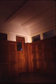 Vista del distribuidor on destaca el recobriment en fusta dels murs.